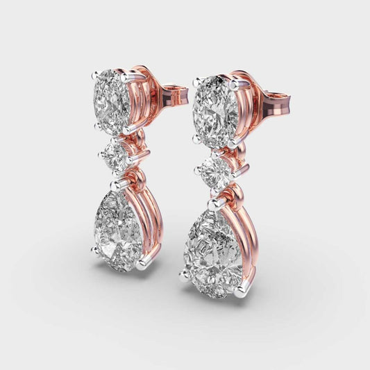 1.58 Ct Pear, Round and Oval Cut Dangling Lab-Grown Diamond Earrings