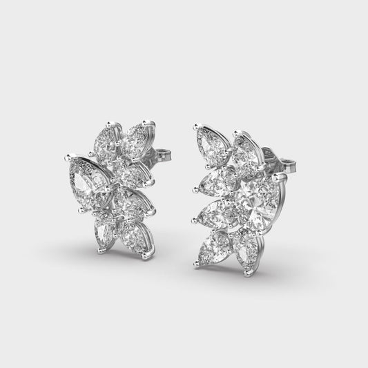 3.90 Ct Pear and Marquise-Cut Flower Clustered Lab-Grown Diamond Earrings