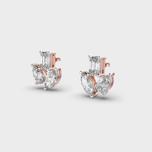 3.40 Carat Tri-Cut Clustered Lab-Grown Diamond Earrings